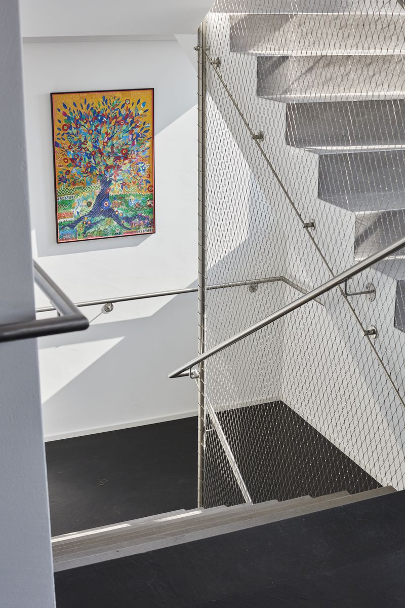 樓梯安全防護網是一種安全防護設施,它可以阻止人們在樓梯上滑倒或跌落,從而避免受傷。它主要由金屬網格和金屬支柱組成,能夠有效地阻攔人們的行動,同時也能夠把樓梯分割成不同的區域,以便人們能夠安全地使用。